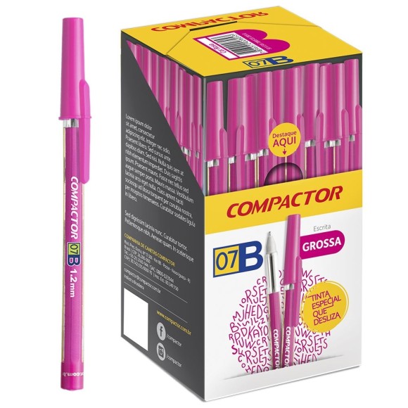 Caneta Esferográfica 1.2mm 07B Rosa c/50 Compactor