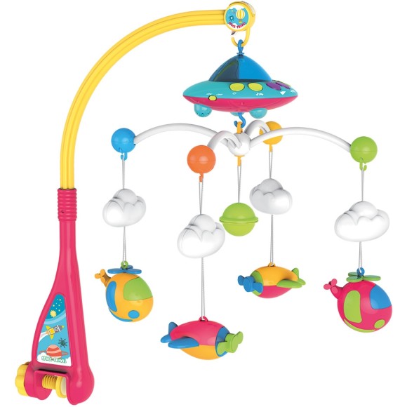 O Móbile Giratório Espaçonave Baby da DM Toys é ideal para entreter e acalmar o bebê, combinando estímulos visuais, sonoros e táteis. Com luz suave, projeções e músicas de ninar, auxilia no desenvolvimento da visão e audição, enquanto decora o quarto com cores vibrantes e temática espacial. Possui design seguro, fácil de instalar em berços, camas ou carrinhos, e conta com diversos botões para controlar volume, música e projeções. Cada detalhe é pensado para criar um ambiente lúdico, relaxante e divertido para o bebê.