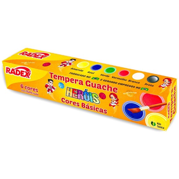 O Tempera Guache 6 Cores da Radex é perfeito para pinturas em papel com pincel, trazendo cores vibrantes e seguras. Ideal para atividades escolares, artísticas e lúdicas, esta coleção de guaches oferece tudo o que pequenos artistas e entusiastas de artesanato precisam!