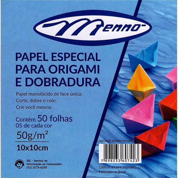 Papel Especial para Origami e Dobradura 10x10cm 50fls Menno