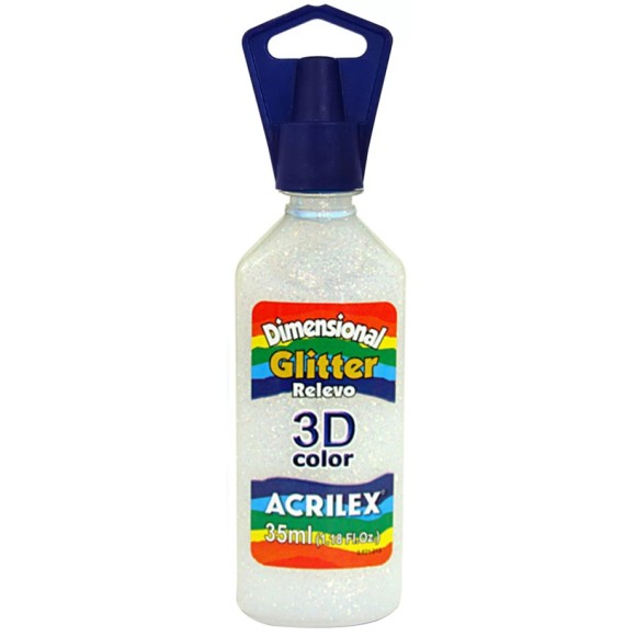 A Tinta Dimensional 3D Relevo Glitter Cristal 35ml da Acrilex é ideal para ser utilizada em qualquer tipo de material poroso e aderente, como tecidos de algodão, madeira, cerâmica, gesso, papel, papelão, isopor.